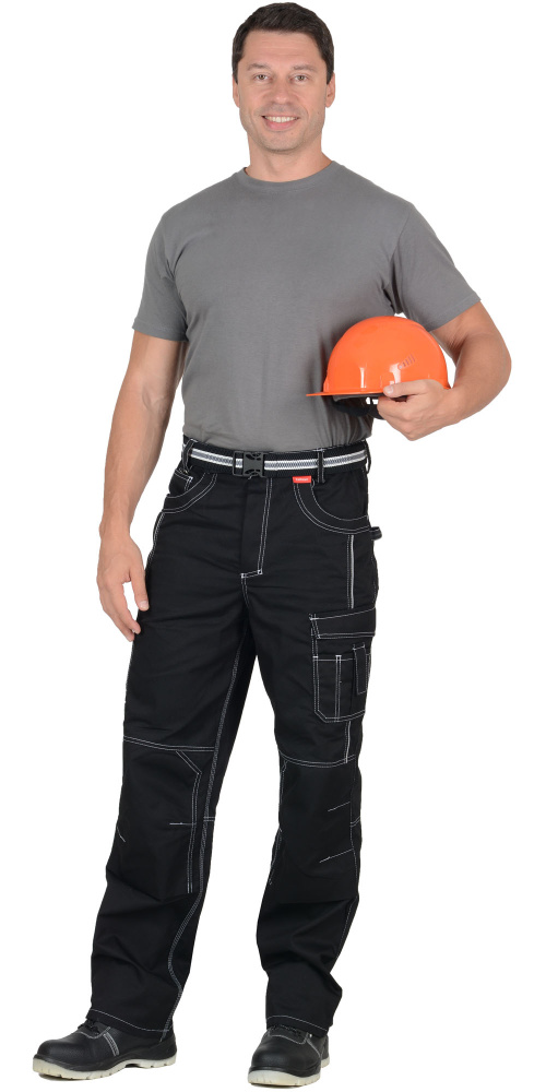 Брюки прямые, на притачном поясе, с застёжкой спереди на молния, с боковыми внутренними карманами, с часовым карманом; на задних половинках с отрезной кокеткой, двумя накладными карманами и карманами под инструменты. В брюках предусмотрен СВ кант для обозначения сигнальной видимости.
