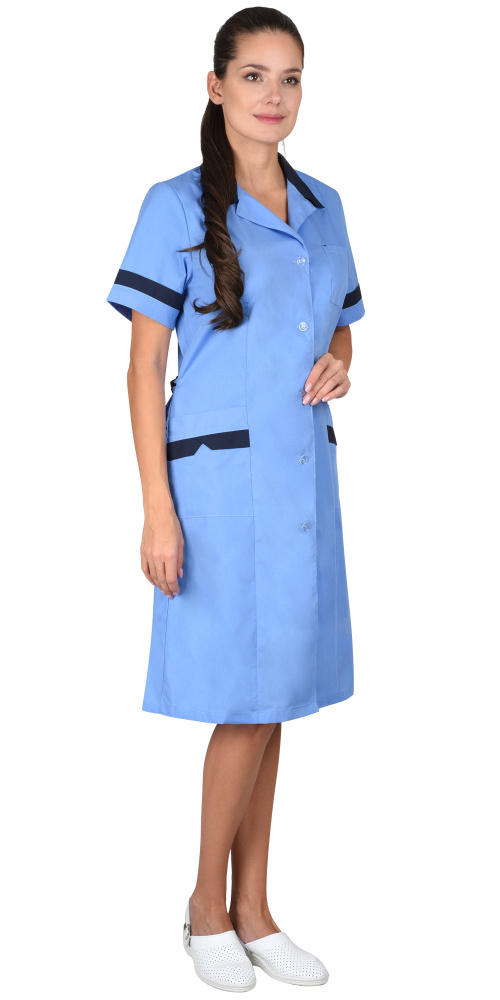 Халат "КЛАССИКА" женский, голубой с темно-синим (ЧЗ)
