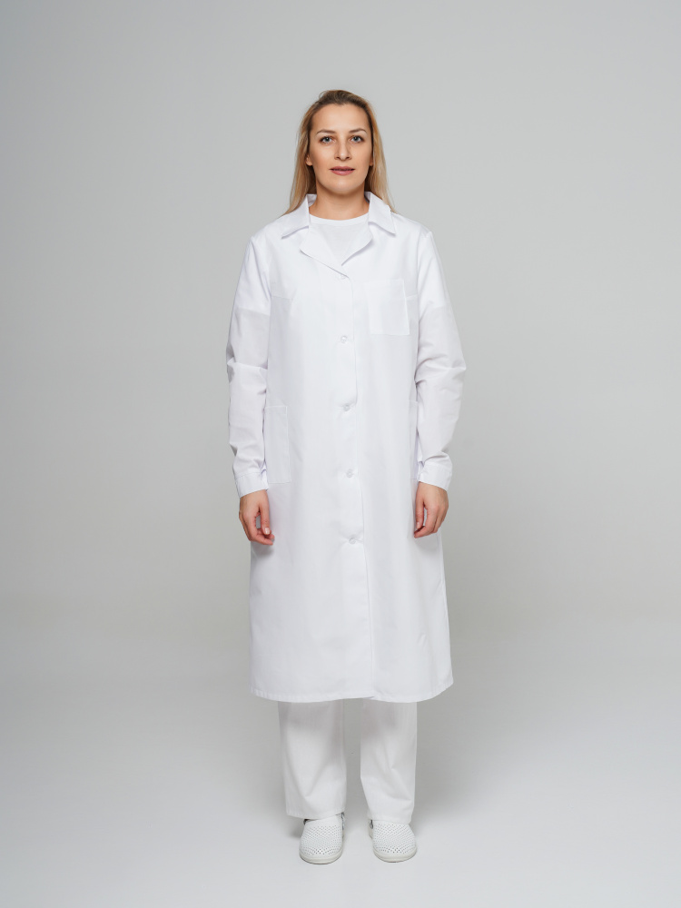 Халат рабочий женский №203 отбеленный, ткань ТИСИ (ЧЗ) (104-108/182-188)