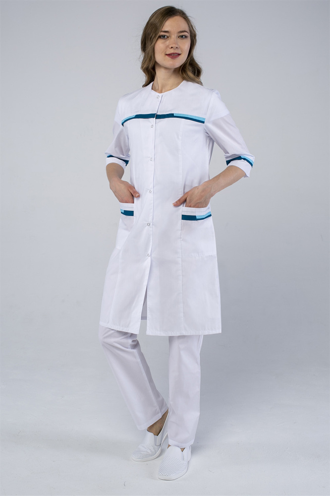 Халат женский Лотос (тк.ТиСи), белый/голубой (ЧЗ) (44/170-176)
