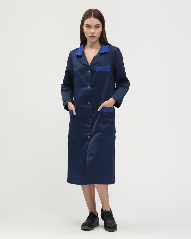 Халат женский Технолог (тк.Смесовая,210), т.синий/васильковый Факел (ЧЗ) ( 80-84/170-176)