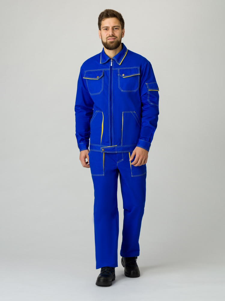 Костюм Лидер (тк.Саржа,250) брюки, васильковый/желтый Текстильторг (ЧЗ) (104-108/170-176)