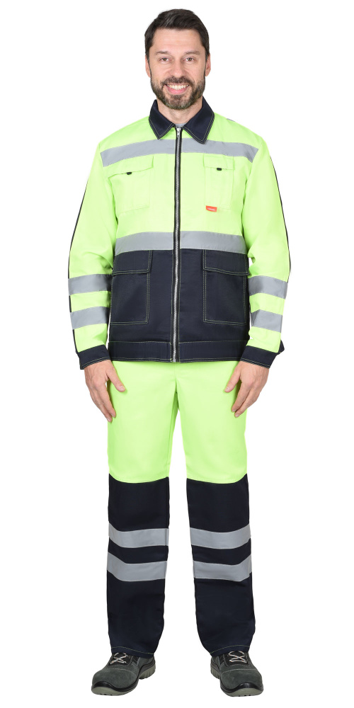 Костюм "МАГИСТРАЛЬ-ЛЮКС" : куртка, брюки неоновый с синим и СОП (ЧЗ) ( 96-100/170-176)