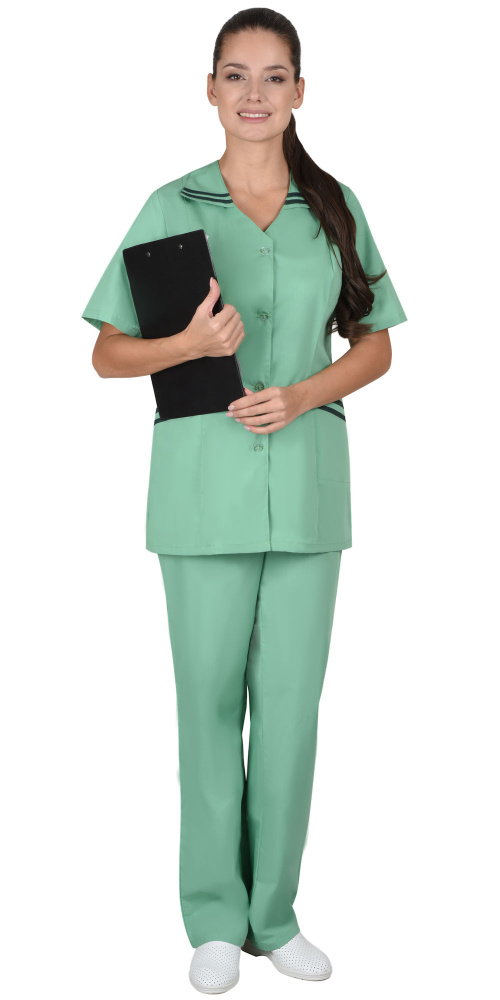 Костюм "Женева" женский: куртка, брюки светлая мята с тёмно-зелёным (ЧЗ) (120-124/158-164)