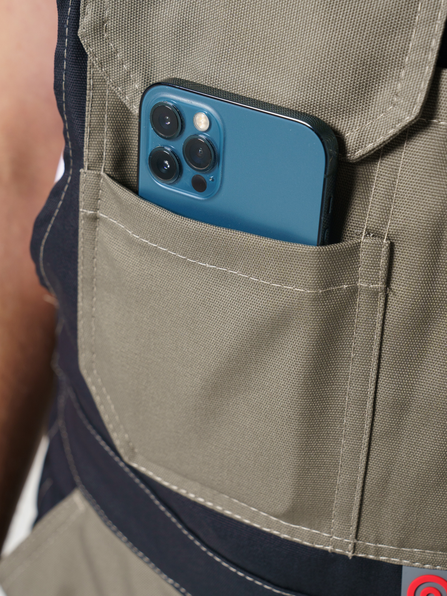 Полукомбинезон с застёжкой гульфика на молнию и застёжкой в боковом шве на пуговицы; с различными многофункциональными карманами; с объемными наколенниками. В полукомбинезоне предусмотрена лента светоотражающая (мелкодисперсная белая) 50 мм фигурной формы.