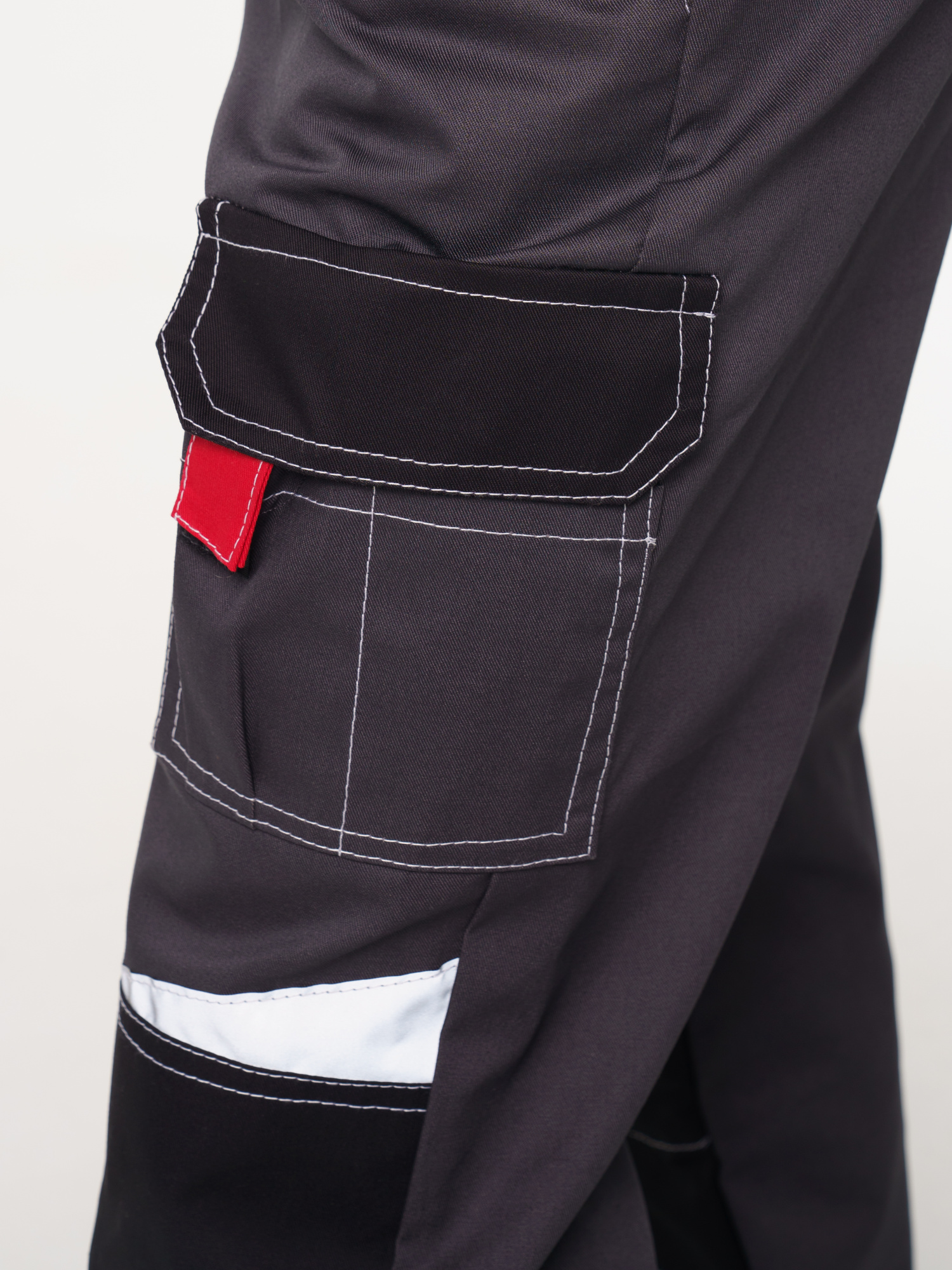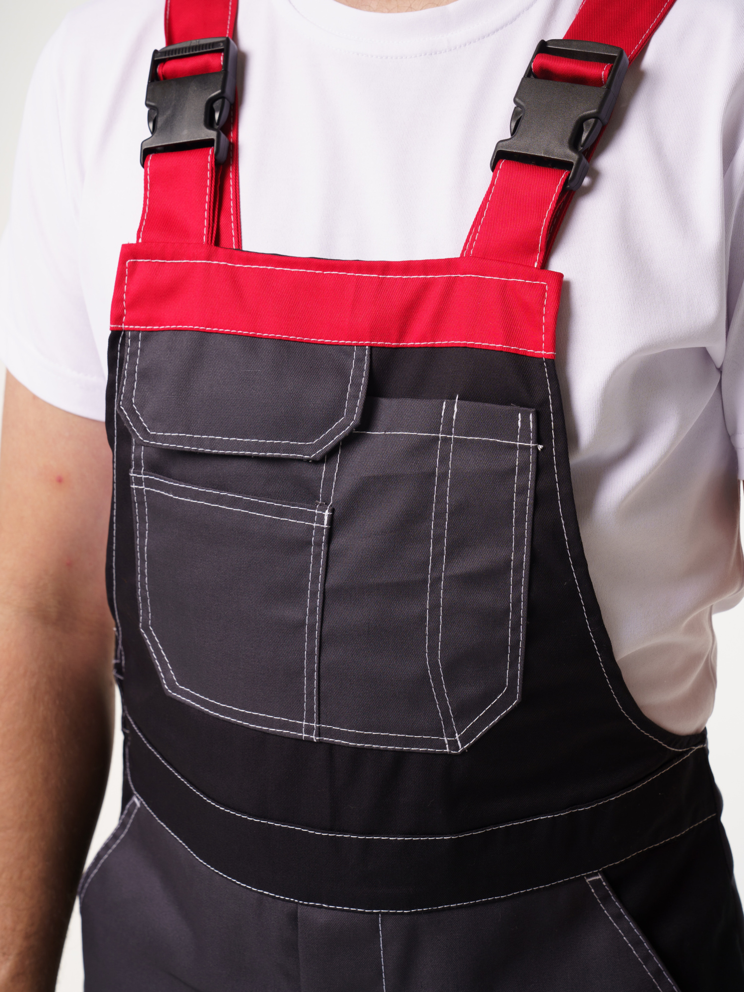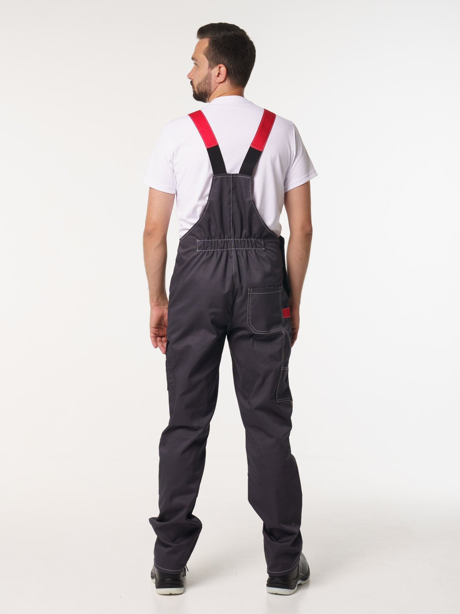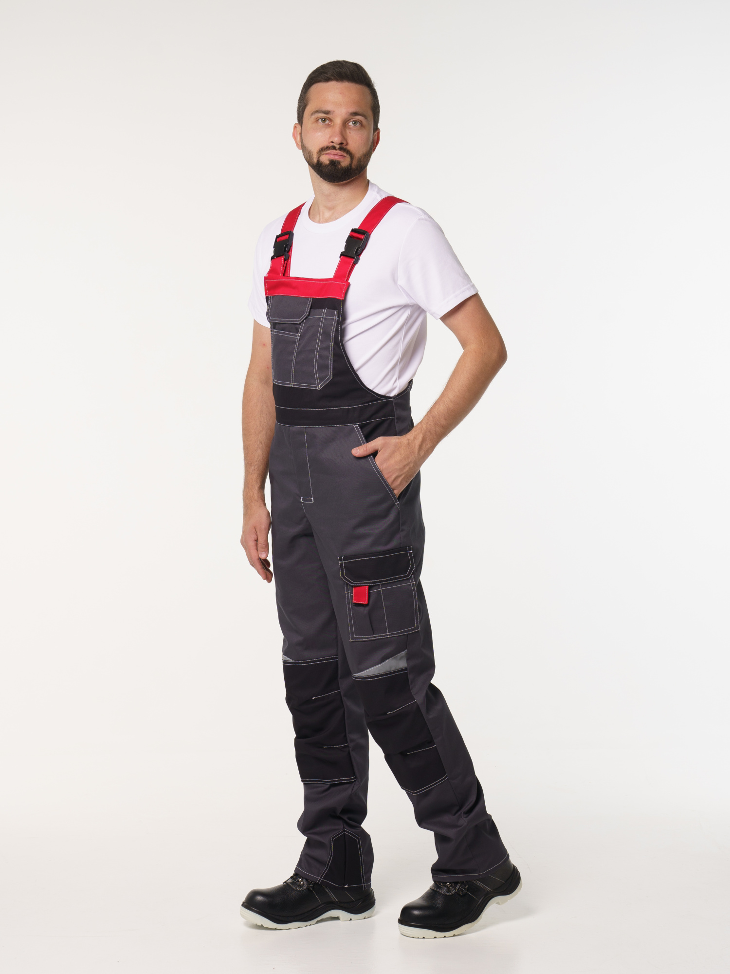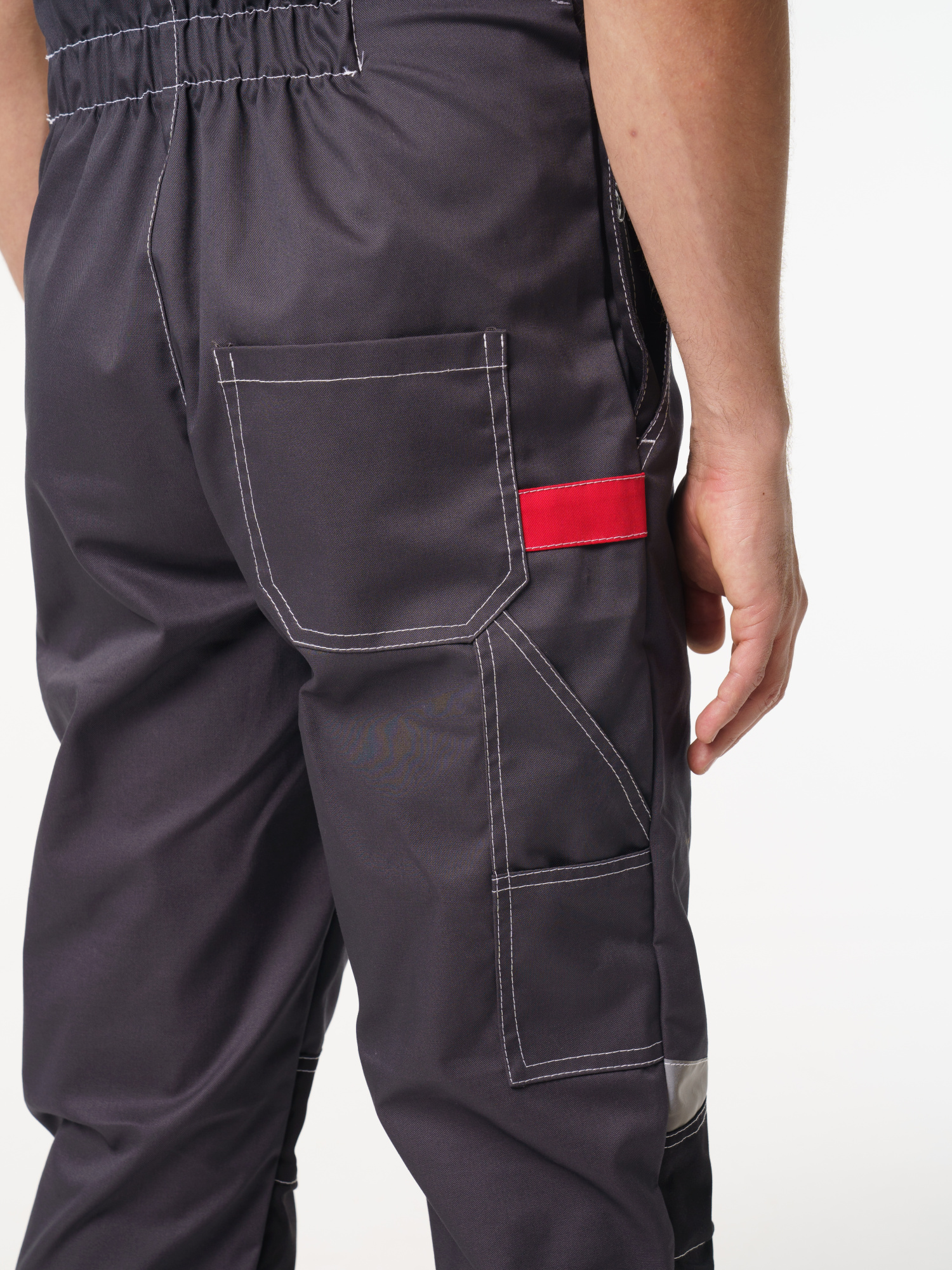 Полукомбинезон рабочий мужской №116 серый, черный, красный, СОП, ткань Rodos