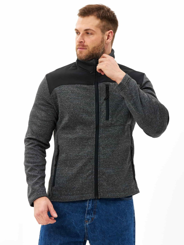 Толстовка (куртка Н23011) цвет: серый/черный, ткань: Софтшел
