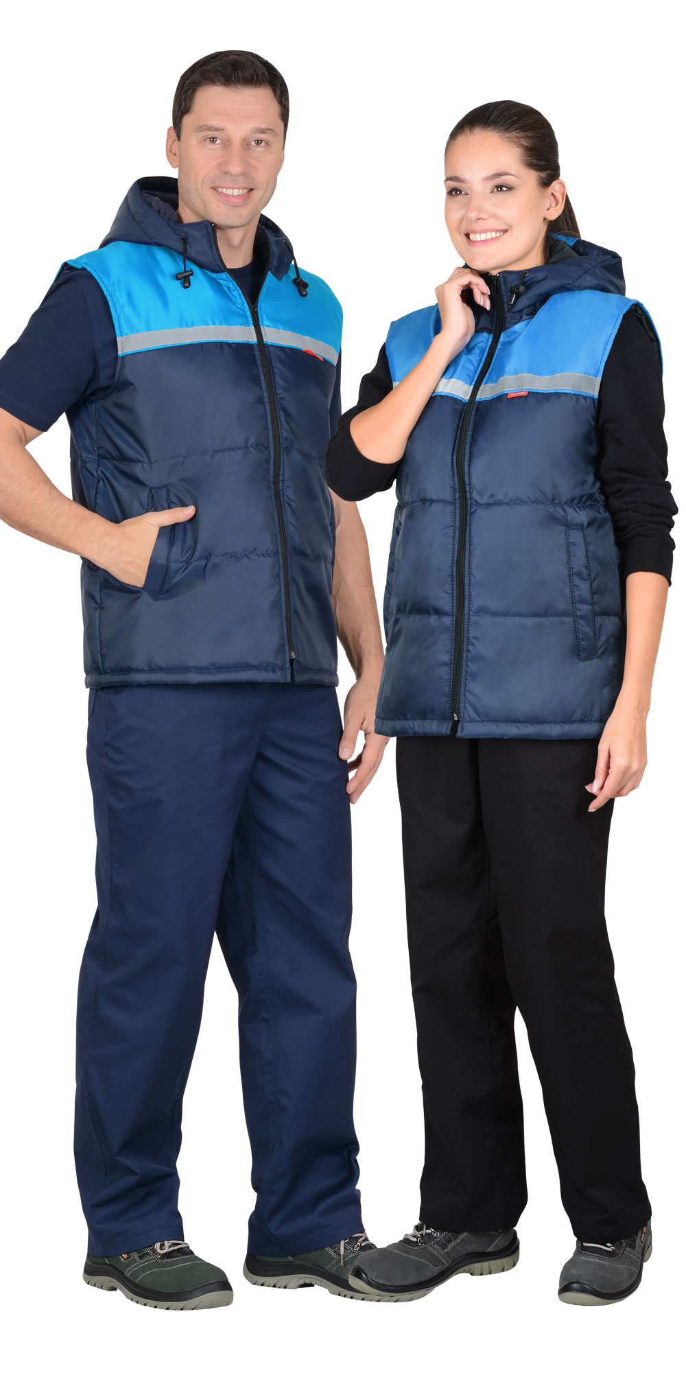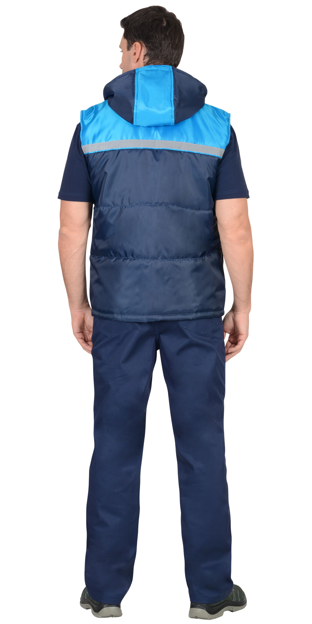 Жилет "Экспресс" с капюшоном и СОП 25мм. синий с голубым (ЧЗ) (104-108)
